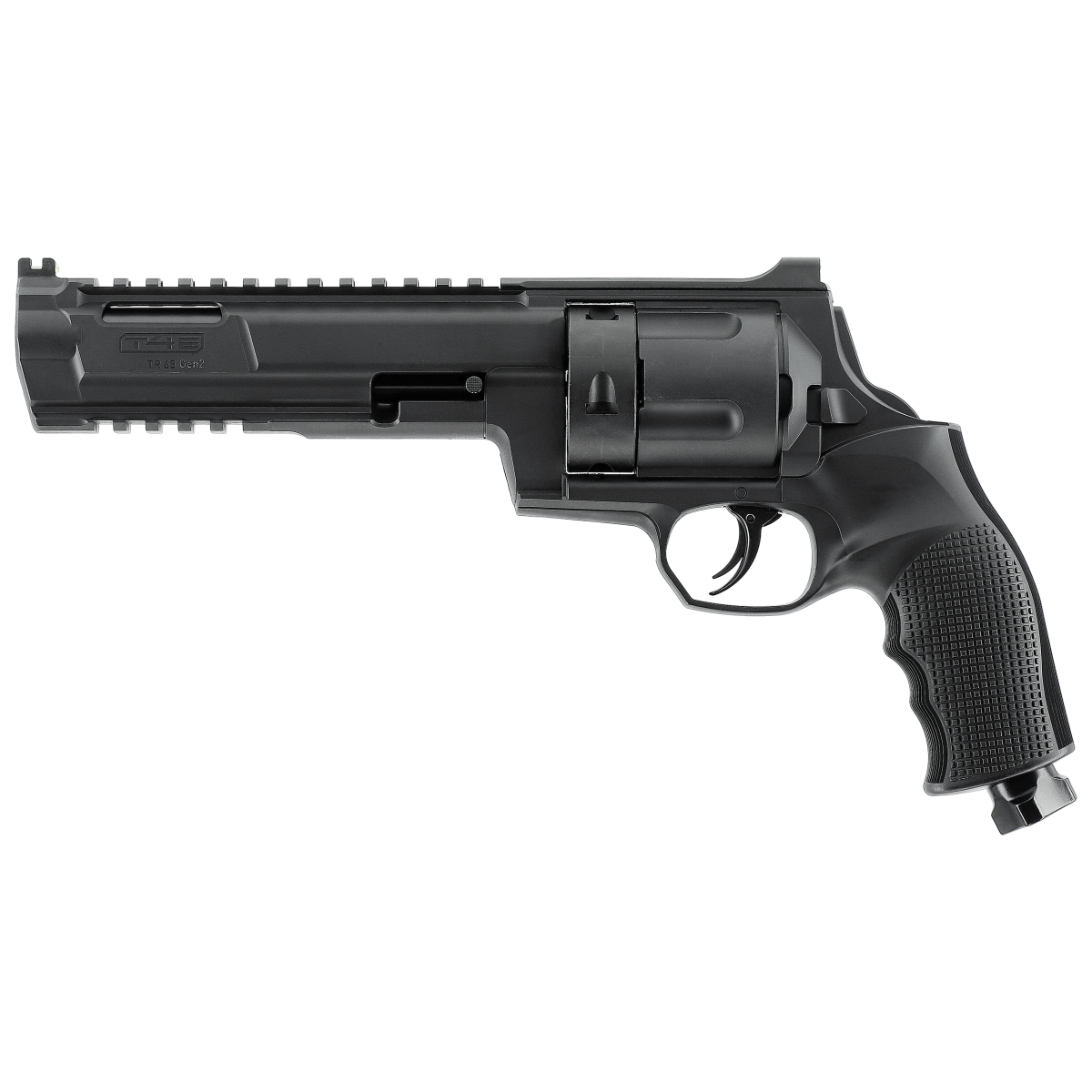 Le TR 68 Gen2 en calibre .68 est l'évolution du revolver T4E, avec une énergie de 16 Joules. La 2e génération intègre le système Quick-Piercing 2.0, perçage rapide sans outil avec purge: un léger coup sous la poignée perce la cartouche CO2 12 g au moment voulu et garantit la pleine puissance même après un long stockage. La visée optimisée avec guidon fibre et le canon de 170 mm allongent la ligne de mire pour plus de précision. Solide et fiable, il dispose d'un barillet 5 coups et de rails Picatinny pour optiques et accessoires.